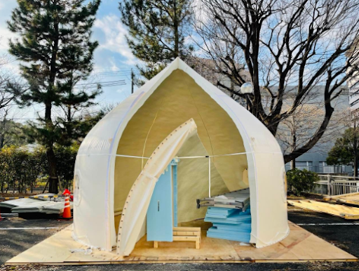 インスタントハウスは、2011年3月東日本大震災での被災地支援をきっかけに、名古屋工業大学大学院・北川啓介教授が発明した新しい構築物です。