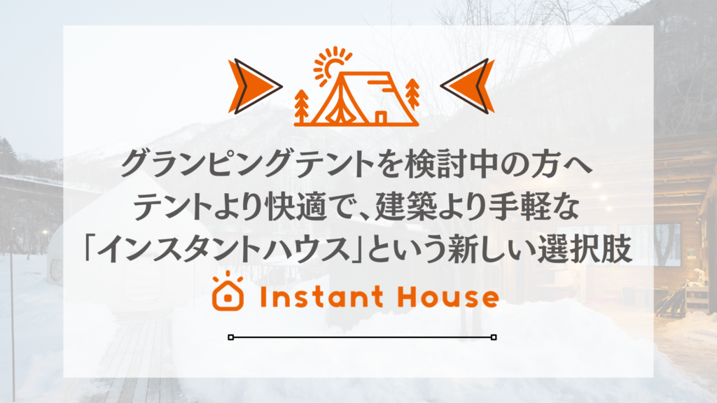 グランピングテントを検討中の方へテントより快適で、建築より手軽な「インスタントハウス」という新しい選択肢