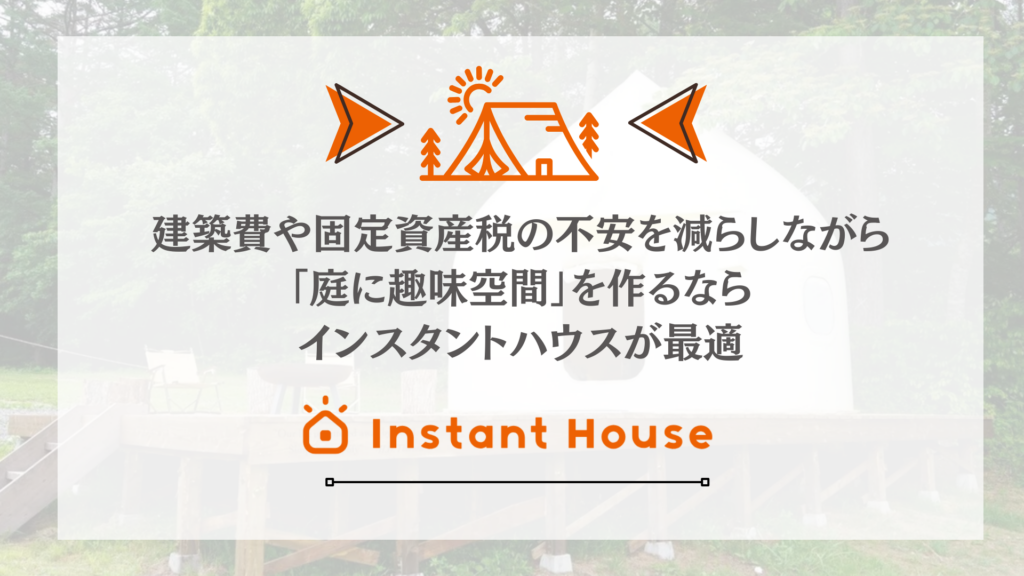 固定資産税や建築費が気になり、庭に趣味部屋をつくる決断ができない。そんな方にこそ、私たちが提案したいのがインスタントハウスです。建築とは異なる考え方の構造物だからこそ、税金や附帯費用を抑えながら専用空間を実現できます。 建築費や固定資産税... -